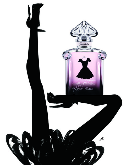 It is accented with pink ribbon and a cartoon of the little black dress from which the scent takes its name. Très chic Guerlain!