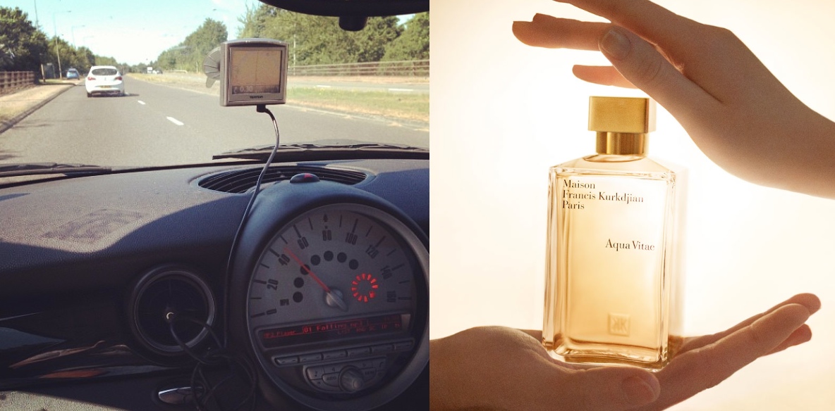 Long trips in cars are never comfortable, especially in the summer when air conditioning brings cool air but also dryness. To combat both the heat and the air conditioning woes I opted to spritz on copious amounts of Masion Francis Kukdjian’s Aqua Vitae, a perfume that hovers just above the skin, casting shadows of yellow sunlight.
