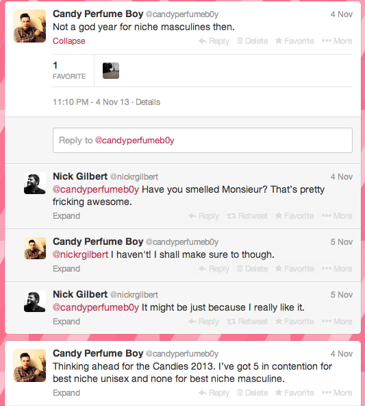 Image via apetogentleman.com. Image 2 my natter with Nick. Notes and quotes via huitiemeparfums.com.