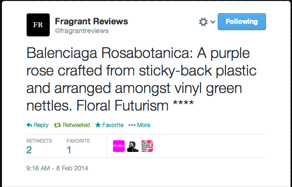 I was suitably impressed by Rosabotanica. It reminds me of the cool spicy rose of Marni but placed within stark green foliage for good measure. As far as roses go this one is pretty unusual and for that reason I think it’s worth a sniff, especially when compared to the designer fare with which it will be competing. Rosabotanica is also a damn sight more memorable than its sister scent Florabotanica, which may no be a mean feat in itself, but goes to show that this is a very worthy offering from the Balenciaga brand indeed.