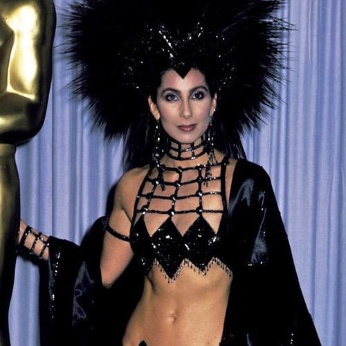 Now we move from the sublime to the ridiculous. There are few collaborations more astoundingly over the top than Cher and Bob Mackie. Mackie brings out the inner Drag Queen in our dear Cher, and that is nothing but a good thing. The Cher and Bob Mackie flamboyance reached its apex at the 1986 Academy Awards, at which, Cher attended in a sequinned skirt and cropped top (gotta’ love a girl that rocks separates at The Oscars) complete with black shawl and fluffy black wig/headpiece. Yeah, it’s amazing.