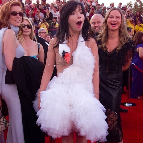 Björk unfairly caught a lot of flack for her Marjan Pejoski swan dress in 2001. Sure, it does look like she killed one of the regal birds and wrapped it round her neck (the Queen must have been livid), and SURE she may have gone a bit overboard with the whole laying of eggs on the red carpet thing, but c’mon, this is Björk for frick’s sake – she has a licence to do whatever weird stuff she wants, because she’s a genius, and if you disagree with that, do feel free to meet me in the playground afterwards to ‘discuss’.