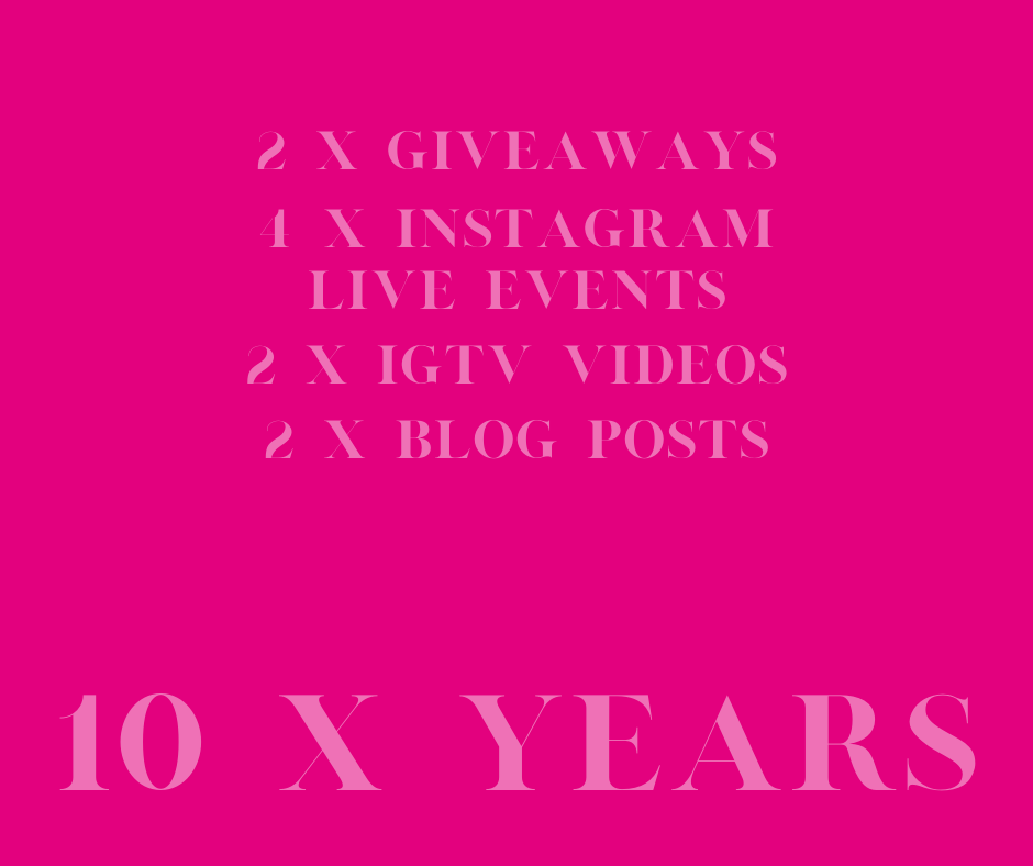 Well, not yet, anyway. I do intend to write a blog post looking back over the last decade and what I have learned, but that will come later. For now, I just want to tell you a bit about how I will be celebrating my tenth anniversary. Over the month of July I’ll be celebrating in ten ways, with two giveaways, four instagram live events, two IGTV videos and two blog posts. It’s going to be a fun (and busy) month and I hope that you will celebrate with me – and that you’ll enjoy what I have planned.