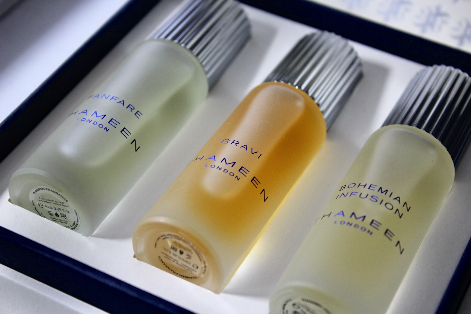 Each fragrance is the Britologne Collection is available in 100ml Cologne Elixir for £250. A Discovery Set with 3 x 10ml (Fanfare, Bohemian Infusion and Bravi) is available for £150.